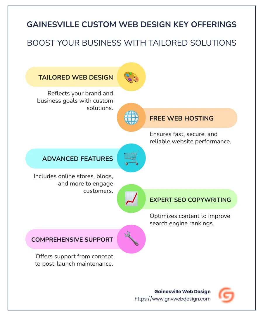 Gainesville custom web design offers the perfect blend of speed, reliability, and SEO-friendliness, making it an excellent choice for small business owners who want to improve their online presence. Here's a quick look at what Gainesville Web Design provides: